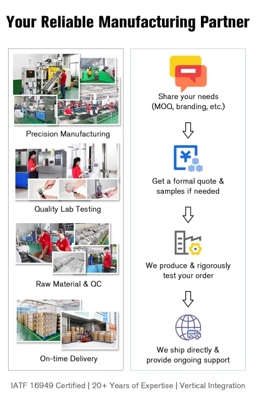 Notre usine cumule plus de 20 ans d’expérience dans la fabrication d’essuie-glaces et de produits d’entretien du vitrage, avec certifications IATF 16949 et ISO 9001. Production, contrôle qualité et inspection sont gérés en interne pour assurer la constance pour nos partenaires à long terme.